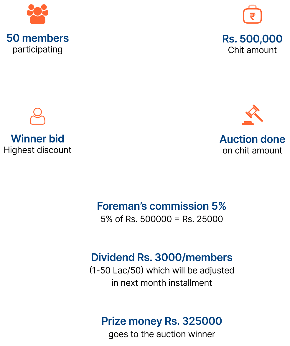 For a ₹10 Lakh chit plan, the monthly payment depends on the chit duration. For example, if it's a 50-month chit, your monthly installment will be ₹20,000 (i.e., ₹10,00,000 ÷ 50 months).